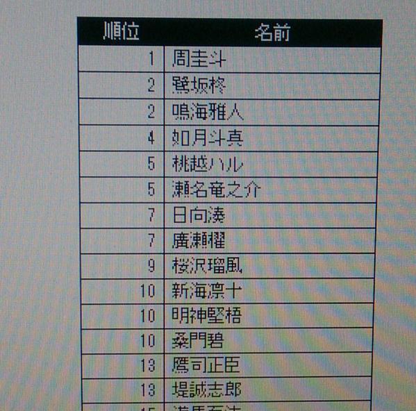 ◆ちょっと目を離した隙に、中間ランキングが。3018位って!!周くん3枚目逃した!!なんてことだ!!最終ランキングは1000位以内だもんな。無理だ。もうやる気失せた^^;