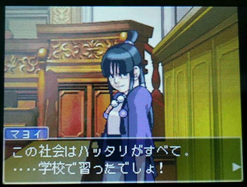 マヨイちゃん仕草集 ・逆転裁判シリーズ 2016年10月07日 2016-10-07◆逆転裁判1~3、約2ヶ月ほどかけて再プレイしました~!(1-5だけ飛ばしてたので、今やってるとこですが)途中、アニメと並行してやってた部分があって、ちょっとごっちゃになりかけたけどw1→2→3と進んで行くにつれて、だんだんスケールが大きくなっていく感が良かった!知ってたけど!3-5は、この話をやるために今までやってきたよ!ってやっぱり思ったwゴドー検事はやっぱり良かったな~。弁護士が泣いていいのは全て終わった時、の言葉通り、最後に流した赤い涙…(T_T)若かりし頃の千尋さんとなるほどくんも良かったし。ミっちゃんと冥ちゃんの弁護士検事対決も良かったし。あやめさんも、やっぱり裏切らなかった。そして、マヨイちゃんのステキさを再確認した2ヶ月でありました。結構重い背景を背負ってるのにそれを感じさせない、ホントにしなやかで強い子!(T_T) 最後の明るさにも泣けた。というわけで、マヨイちゃんの名場面名ポーズを激写してみたので、置いておきます。主に私がうっとりする目的でw ↓出会ったばかりなのに、早くもなるほどくんをいじり始めるマヨイちゃん。 ↓(左)弁護士席でなるほどくんの隣にいるマヨイちゃんのこの表情が猛烈に好き。 (右)おすましマヨイちゃん。 ↓(左)マヨイちゃんおこ。 (右)泣いて悔しがるマヨイちゃん。カワイイ。 ↓(左)この言葉のチョイス。 (右)なるほどくんの無知を謝るマヨイちゃんw ↓(左)見た目で判断するマヨイちゃん。 (右)話を聞いて手のひらを返すマヨイちゃん。(ドヤ顔) ↓(左)お決まりのセリフ。 (右)ドヤ顔やっぱりカワイイ。 [0回]PR